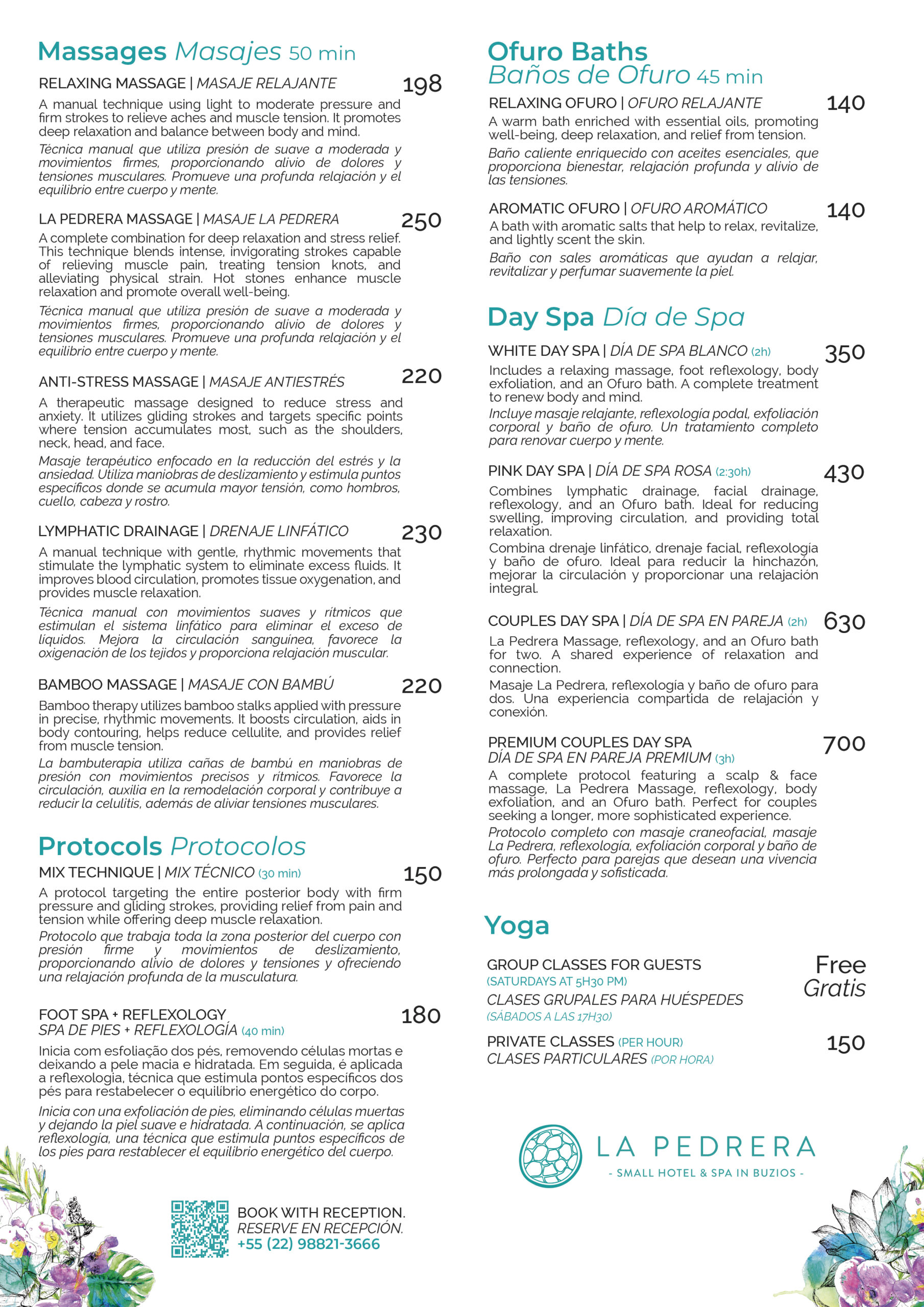 Aqui no La Pedrera, nosso SPA é o refúgio perfeito para relaxar, renovar e se reconectar com o que há de mais essencial: o seu bem-estar. Aproveite um ambiente pensado para paz e tranquilidade, com tratamentos que cuidam do corpo e da mente.